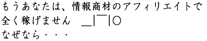 あなたはメルマガでアフィリエイトしたときに 有名な人のメルマガを読んで「かなわないな・・・・」と思ったことはないですか?? →ネームバリューがない・・・ →有益な特典が作れない・・・・・ 「せっかくの値上げなのに、他のアフィリエイターは馬鹿みたいに売っているのに売れない。 だんだんメルマガを書くのさえ嫌になる。」 やはり私には無理なんだ・・・・・ 「特典が一番重要なのは、わかっているけどネタも何もない。」 やはり私には無理なんだ・・・・・・ 「多くのネット起業家が言っている。特典なんてカンタンに作れるよ!!」 でもネタがないんだ・・・・・・・ 厳しいことを言わせていただきます。 あなたは、稼げません! そんなことを、少しでも思っているのならあなたは確実に稼げないでしょう。 迷いと疑い・・・ それはあなたの判断を鈍らせます。 きっとあなたはこう思っているでしょう。 「買おうかなぁ〜〜〜,でも・・・・・」 確かにあなたの気持ちはわかります。 しかし、それでは「ネタがない・私には無理だった」と思っているのと一緒ではないでしょうか? 迷いや疑いはあなたの決断を鈍らせます。 決断は行動を鈍らせ、あなたの能力を半分以下にします。 しかし、あなたが決断をしたのなら、あなたが思っている以上に稼げるのです。 私たちは、あなたに道具は揃えました。 あとは決断するだけです。 あなたには、考えている以上の能力が隠されているのです。 あなたの能力を最大限に発揮させるのは、あなたの決断にかかっています。 あなたはいつまで、あなた自身の可能性を奪えば気がすみますか??? 決断するだけで、驚くほど見ている世界が変わります。 ![]() |