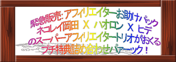 期間限定9800円! ん? 引っ張らないのか(笑) はい、9800円です。 アフィリ1件で元が取れちゃいます。 そこから先も使い放題です。 期間限定特別価格:9800円 需給バランスを考え予告なく値上げ、販売終了いたします。 お急ぎください。 ![]() 特定商取引法(通信販売業法)に基づく表示 |